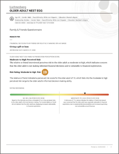Simply answer 14 multiple-choice questions that cover a recent financial transaction and general attitudes toward finances. Take the FFQ online and Older Adult Nest Egg tabulates your answers and provides a Risk Score — crucial information to determine whether and how to protect your relative or friend from financial exploitation.